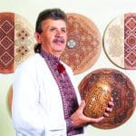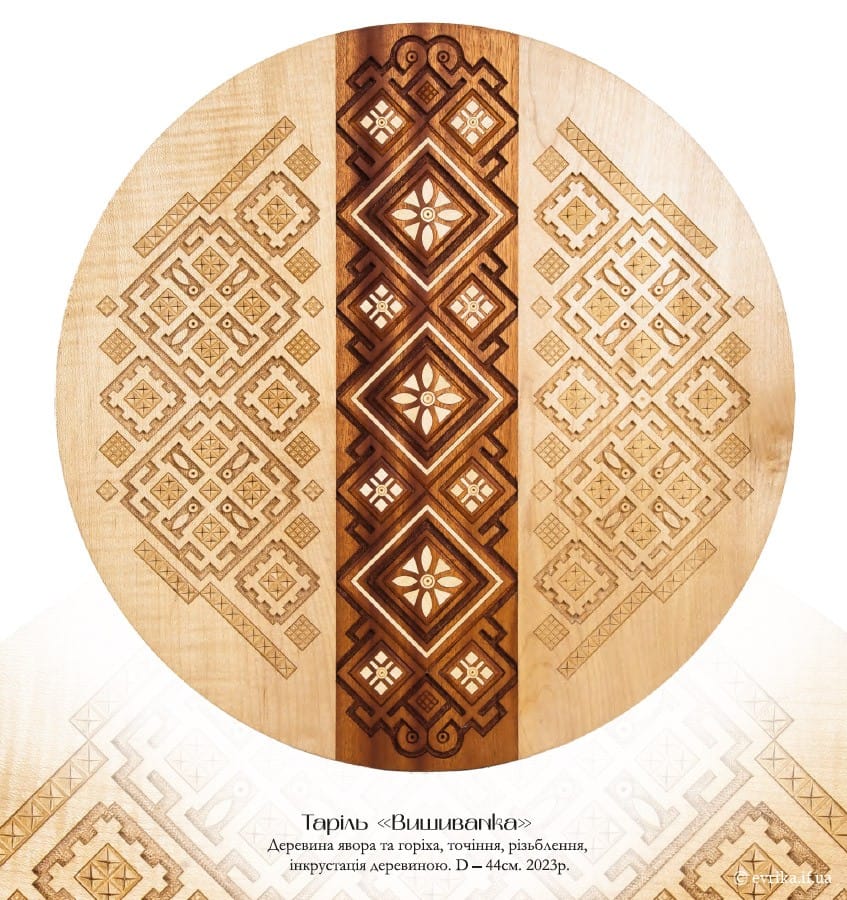 Тепер у творчому колі майстра знаходяться декоративні тарелі з різноманітними композиціями, технікою виконання, експериментальними поєднаннями різних фактур деревини. Використання в орнаменті мотиву «квадрати», який зустрічається у різноманітних композиційних варіантах у техніці різьби, інкрустації та комбінованої техніки різьби з інкрустацією. Прямі форми «квадратів», «ромбів», поєднуються або контрастують з округлими формами, «кучерів», «дужо» та інших орнаментальних мотивів та елементів. Майстер у всіх роботах витримує майстерність кожного елементу декору відносно загальної конструкційної орнаментальної схеми.